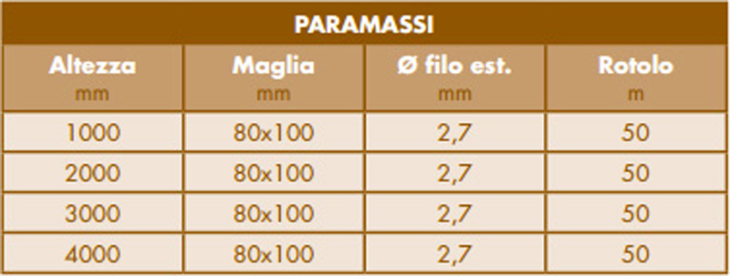 Paramassi di varie altezze e maglie.